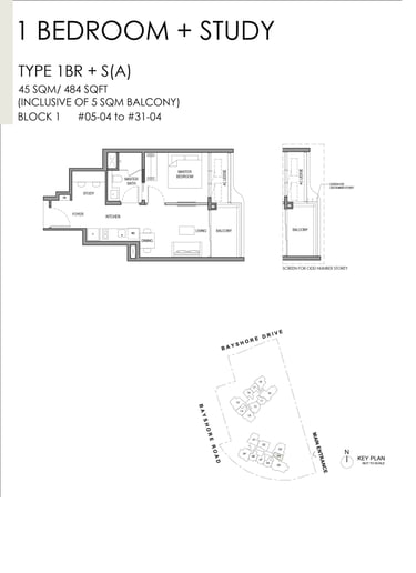 1-Bedroom + Study with Seaview