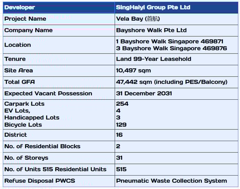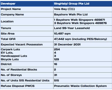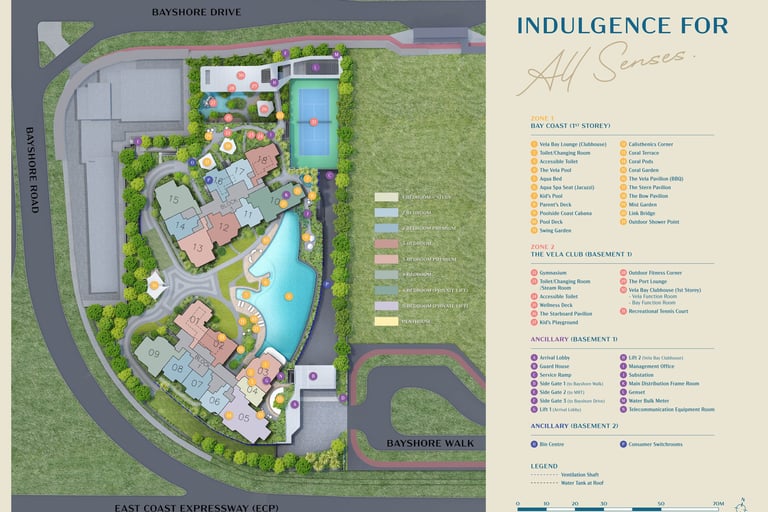 Situated in the coveted Bayshore precinct, Vela Bay enjoys unrivaled connectivity and lifestyle convenience. The upcoming Bayshore MRT station places the city within easy reach, while Changi Airport is just minutes away. Residents are surrounded by coastal parks, cycling trails, and vibrant dining options. With East Coast Park at its doorstep, the development offers a rare blend of urban accessibility and seaside tranquility.